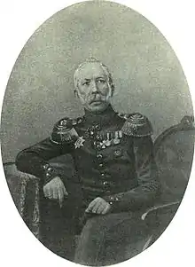 He was brought up in the 1st Cadet Corps, from where he was released as an officer in 1817; participated in the Russian–Turkish Campaign of 1828–1829 and the suppression of the Polish Uprising of 1830–1831.[1] For the Storming of Warsaw he was awarded a Golden Weapon with the Inscription "For Bravery".[2] In 1844, from the post of Chief of Staff of the 3rd Reserve Cavalry Corps, Lieutenant Colonel Vintulov was appointed director of the Voronezh Cadet Corps and the following year was promoted to major general.[1]