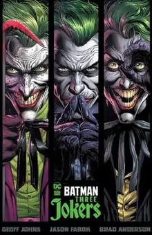 ![]() Cover art of Batman: Three Jokers (September 2020) featuring The Clown Joker (left), The Criminal Joker (center), and The Comedian Joker (right); art by Jason Fabok and Brad Anderson.  | |