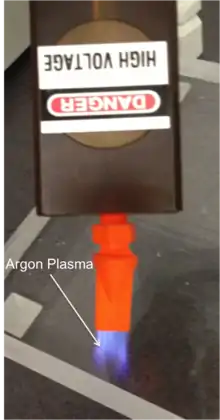 Argon plasma used for polymer surface functionalization prior to bonding.