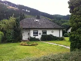In 1945, American forces captured Schmitt and, after spending more than a year in an internment camp, he returned to his home town of Plettenberg and later to the house of his housekeeper Anni Stand in Plettenberg-Pasel. He remained unrepentant for his role in the creation of the Nazi state, and refused every attempt at denazification, which barred him from academic jobs.[6] Despite being isolated from the mainstream of the scholarly and political community, he continued his studies, especially of international law, from the 1950s on, and frequently received visitors, both colleagues and younger intellectuals, well into his old age. Important among these visitors were Ernst Jünger, Jacob Taubes and Alexandre Kojève.