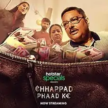 Chhappad Phaad Ke is a 2019 Indian Hindi-language comedy film directed by Sameer Hemant Joshi, produced and bankrolled by Yoodlee films, film division of Saregama with Vinay Pathak, Siddharth Menon, Ayesha Raza Mishra and Sheetal Thakur in lead roles for Hotstar Specials. The story revolves around a middle class family, who is low on finances but high on morals and how their life takes a turn when they find a bag full of money. It began streaming exclusively on Hotstar from 18 October 2019.[2]