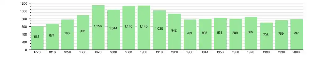 Cornol has a population (as of December 2020) of 1,028.[8] As of 2008, 3.8% of the population are resident foreign nationals.[9] Over the last 10 years (2000–2010) the population has changed at a rate of 9.7%. Migration accounted for 10.2%, while births and deaths accounted for 0%.[10]