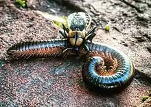 The Ectrichodiinae are a subfamily of assassin bugs (Reduviidae) known for specializing on millipedes as prey.[1] The group comprises more than 600 species in about 115 genera,[2] making it a fairly large subfamily. The bugs are also known for their aposematic coloration, often brightly colored metallic blue, red, or yellow.