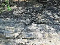 ![]() Outcrop of the lower Fayetteville Shale in northern Arkansas  | |