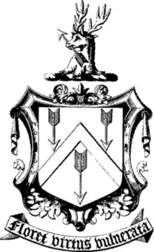 The scribe preparing the main (Exchequer) Domesday Book appears to have overlooked this entry when transcribing from Exon Domesday, thus it was omitted.[10] This early name of the estate may have come from the Schute Broke, a stream, whose name was recorded by the now lost "Shutbrook Street" in this vicinity.[10] It was later held from the feudal barony of Okehampton.[10] Flohere was also the mesne tenant of the manor of Sutton in the parish of Halberton, Devon, which he held from a certain Aiulf, one of the minor Devon Domesday Book tenants-in-chief of King William the Conqueror.[11] Flohere's mesne-tenancy of Sutton is mentioned only in the Exon Domesday Book. It is unclear whether Flohere was connected to Fulchere a Devon Domesday Book tenant-in-chief, called in the Exon Domesday "Fulchere the Bowman", as the arms adopted by the Floyer family at the start of the age of heraldry (c.1200-1215) featured arrows.