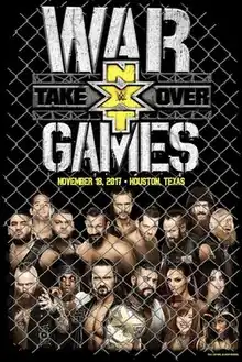 TakeOver was a series of professional wrestling shows that began in May 2014, as WWE's then-developmental league NXT held their second WWE Network-exclusive event, billed as TakeOver.[1] In subsequent months, the "TakeOver" moniker became the brand used by WWE for all of their NXT live specials. Announced on November 17, 2016, WarGames was scheduled as the 17th NXT TakeOver event. Originally promoted as TakeOver: Houston, as the event was held in Houston, Texas,[2] the event was changed to TakeOver: WarGames after an announcement by Triple H on October 4, 2017. The event's name was derived from an old match type that was originally used in the National Wrestling Alliance, and later, an annual match held by World Championship Wrestling. The TakeOver event featured the namesake match, which was the first time in nearly twenty years since the match last occurred. The inaugural TakeOver: WarGames was held on November 18, 2017, at Houston's Toyota Center and was a support show for that year's Survivor Series pay-per-view (PPV).[3]