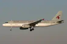 Services to Athens, Istanbul, Madras and Tunis were suspended in late 1996, whereas Calcutta and Muscat were removed from the route network in January and September 1997, respectively.[18] Flights to London were launched during 1997.[19] The airline also took delivery of two second-hand 231-seater Airbus A300-600R aircraft on lease from Ansett Worldwide Aviation Services (AWAS) during the year; they replaced two Boeing 747s. The entering of these two A300s into the fleet also marked the introduction of a new logo.[20] A third A300-600R joined the fleet shortly afterwards, also on lease from AWAS.[21] In July 1998 the carrier placed a firm order with Airbus for six Airbus A320s, slated for delivery between 2001 and 2005; it also took options for five more aircraft of the type.[22][23] Also in 1998, the carrier struck a deal with Singapore Aircraft Leasing Enterprise (SALE) for the lease of four Airbus A320s, with deliveries scheduled between February and April 1999;[24] these latter four aircraft were aimed at replacing the Boeing 727-200 Advanced fleet and to fill the capacity gap before the hand over of the first A320 from Airbus.[23] The airline took delivery of the first A320 powered by Aero Engines V2500 on lease from SALE in February 1999.[25]