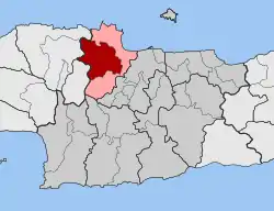 Tylisos (also Pyrgos-Tylissos or Tylissos; Greek: Τύλισος; Linear B: Tu-li-so)[2] is a town and a former municipality in the Heraklion regional unit, Crete, Greece. Since the 2011 local government reform it is part of the municipality Malevizi, of which it is a municipal unit.[3] The municipal unit has an area of 131.064 km2 (50.604 sq mi).[4] Population 2,867 in 2011. It is an ancient Minoan peak sanctuary and town. The Municipality of Tylisos was created in 1999 and includes 11 villages. The economy is based on agriculture, mainly grape cultivation (accounting for 4.8% of the island’s production) and olive cultivation. At the same time stock farming of sheep, goats and chickens and beehive farms are abundant.