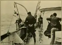 Although Albatross II did not fulfill the hope the BOF expressed in 1926 that she could serve its needs for many years to come, she did provide important service during her six years on fisheries research duties, surveying the fishing grounds off New England and studying the biology of some of the more commercially valuable marine species of the area. Albatross II's collecting of marine species supported important studies of haddock eggs and larvae by Lionel A. Walford and plankton by Henry B. Bigelow and Mary Sears,[2] and while studying Atlantic mackerel biology aboard her between 1926 and 1932, Oscar Elton Sette pioneered the computation of population estimates of larval fish growth and mortality rates.[2][8] In addition, William C. Herrington experimented aboard Albatross II with "savings gear," large mesh nets designed to permit the escape of undersized fishes through the otter trawls as a way of helping to preserve the fish population; these and later experiments laid the foundation for mesh regulations established later for commercial fishing in the northwestern Atlantic Ocean.[2]