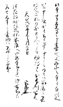 One of the most important performances of Zeami's career occurred in 1394. At that time, Ashikaga Yoshimitsu visited the Kasuga shrine in Nara and Zeami performed during the visit.[21] It was a significant political event, so Zeami was likely a well known artist then. He gave two significant performances for the Shōgun in 1399,[22] one of which could have been attended by Emperor Go-Komatsu.[23]